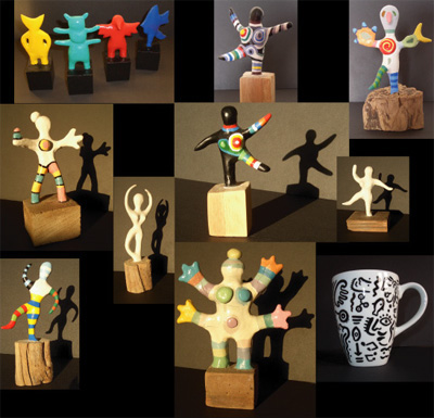 Ein Ausschnitt zahlreicher kleiner Tonfiguren, die in verschiedenen Sommerurlauben am Meer entstanden sind. Da leider sehr mässig fotografiert, hier nur in kleiner Darstellung.